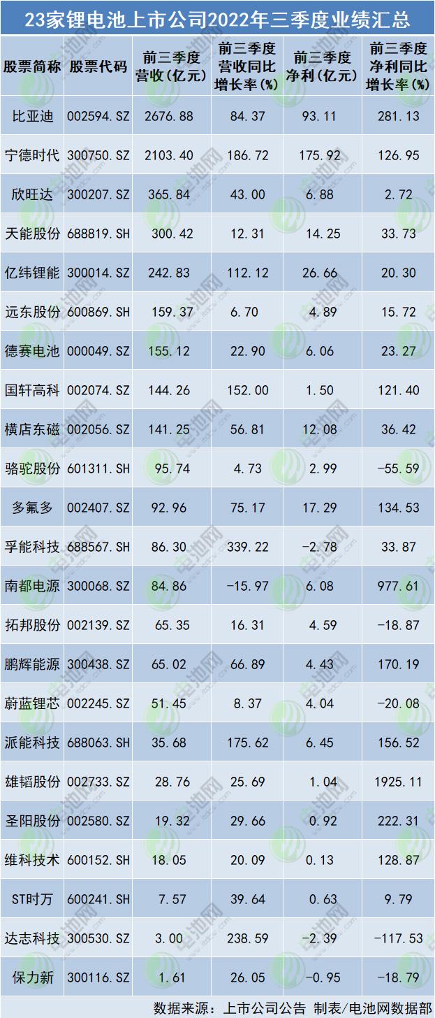受(shòu)原材料價格大(dà)漲及疫情等因(yin)素影響,今年前(qian)三季🍉度,锂電😘池(chi)業績雖不及锂(lǐ)資源上市公司(sī)業績亮眼,但多(duō)數企業也實現(xian)業績增長。
