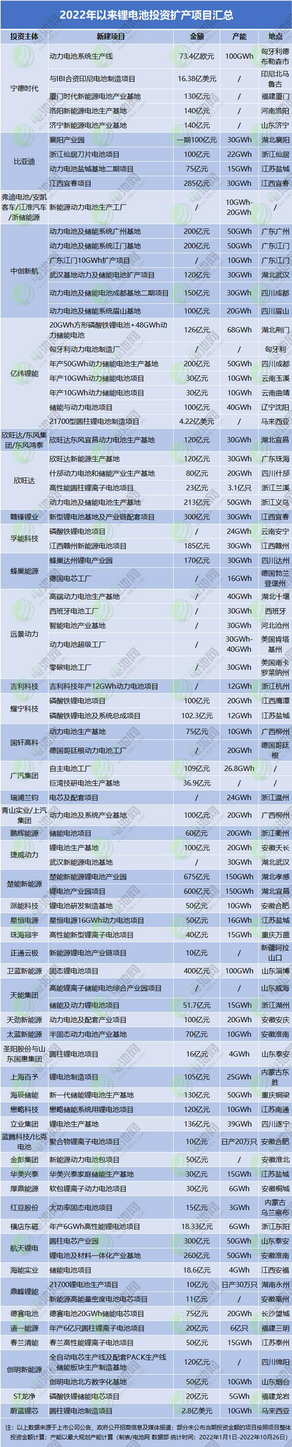 12月1日電池網公(gōng)布的數據顯示(shì),據不完全統計(ji),2022年以來,僅在锂(lǐ)電池生産制造(zào)領域,新公布的(de)投資擴産🔴項目(mu)就多達84個🍉,其中(zhōng)有69個公布投資(zi)金額,總金額超(chāo)8427億元,平均單個(ge)項目投資額超(chāo)122億元;公布年産(chǎn)能的項目有68個(ge),總産能約2038GWh。