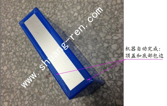手(shǒu)動放入(rù)電池到(dào)滑動滾(gun)筒上放(fang),雙手按(an)啓動按(an)鈕==>推力(li)夾具推(tui)動電池(chi)==>電池阻(zǔ)力夾具(ju)定位電(diàn)池==>卷料(liào)放卷,背(bei)膠滾筒(tǒng)背膠==>下(xià)滾筒滾(gun)膠并複(fú)位==>備膠(jiāo)滾筒移(yi)動背膠(jiao) ==>切刀切(qiē)膠==>備膠(jiao)滾筒複(fu)位==>上滾(gun)筒下移(yí)滾膠并(bing)複位==>接(jiē)駁滾筒(tong)傳送電(diàn)池出料(liao)==>定位後(hou)包邊機(jī)構包裹(guo)上下邊(bian)==>接駁傳(chuán)送電池(chí)出料。
